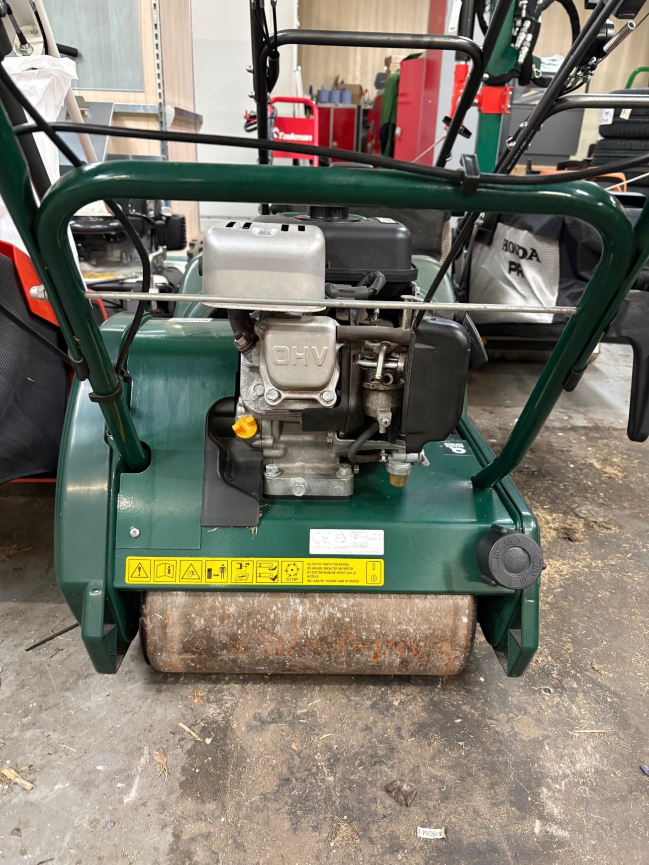 Used Allett Kensington 14" cylinder mower fitted with a petrol engine.