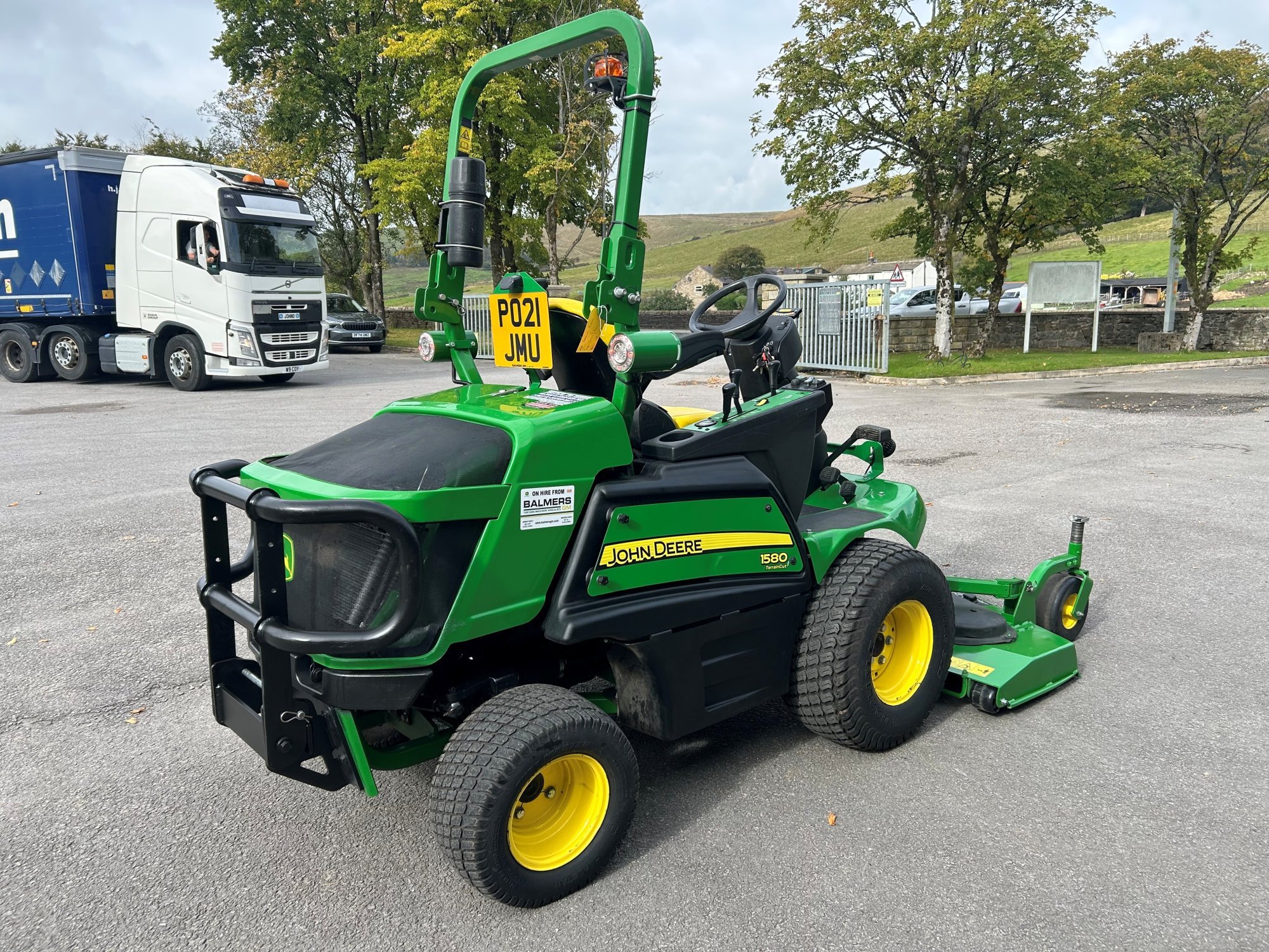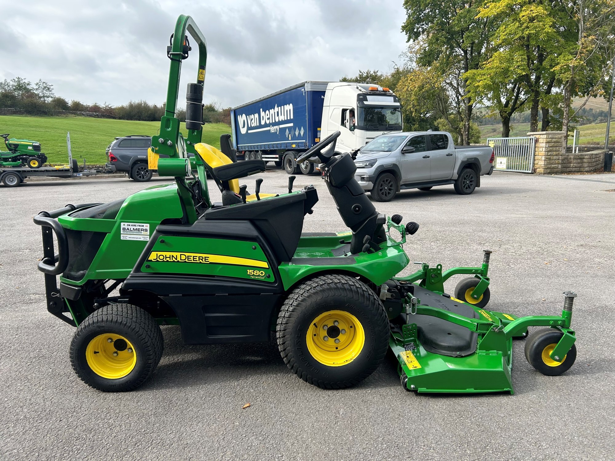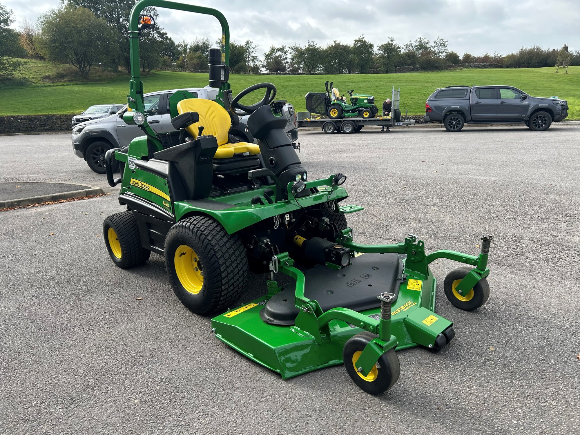 Ex hire John Deere 1580 front mower, 38HP diesel Yanmar engine, 62" rear discharge deck, air seat, two speed hydrostatic transmission, road light kit and road registered.