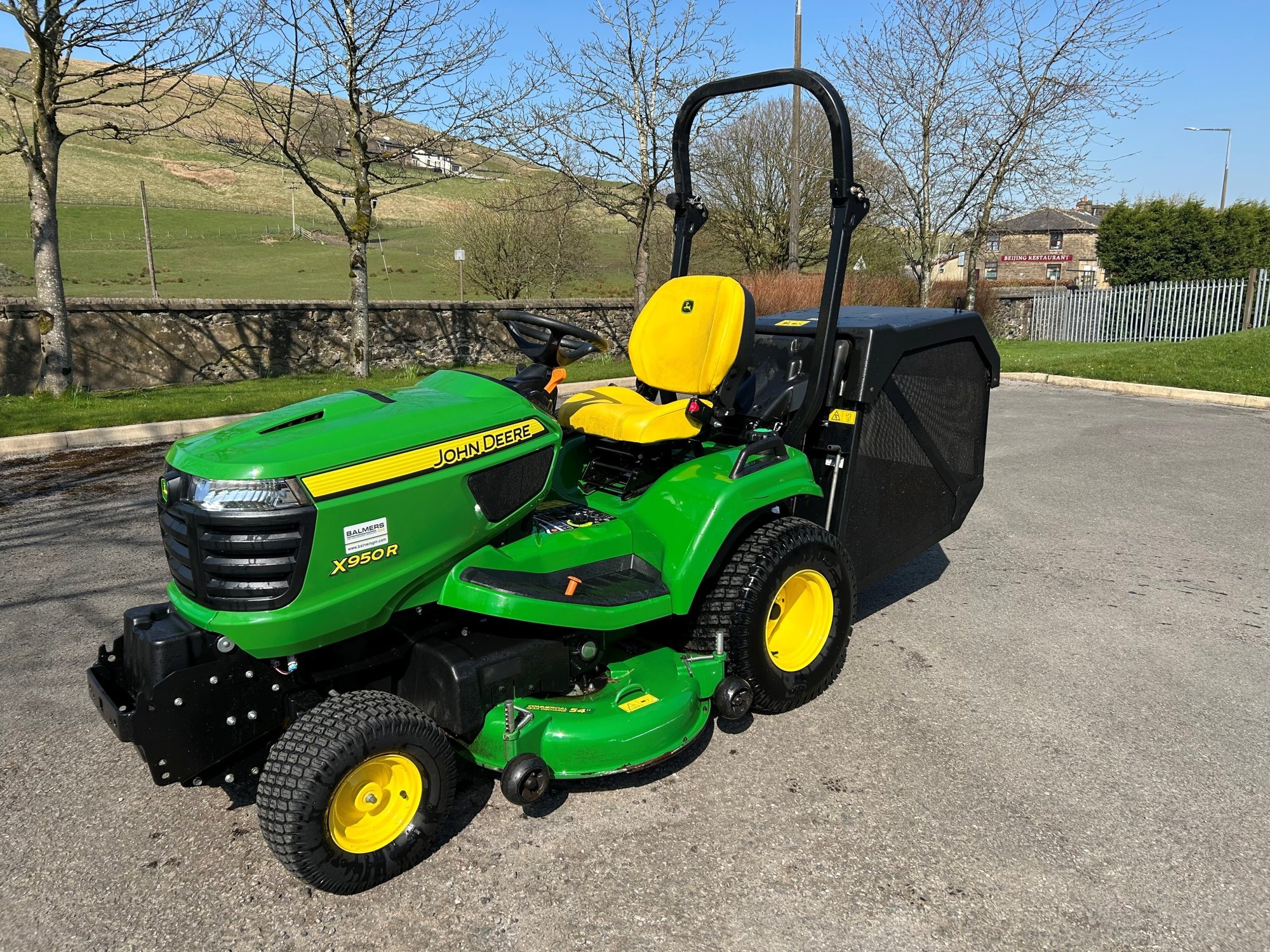 John Deere X950R lawn tractor, 54" cutting deck c/w low tip collector.
