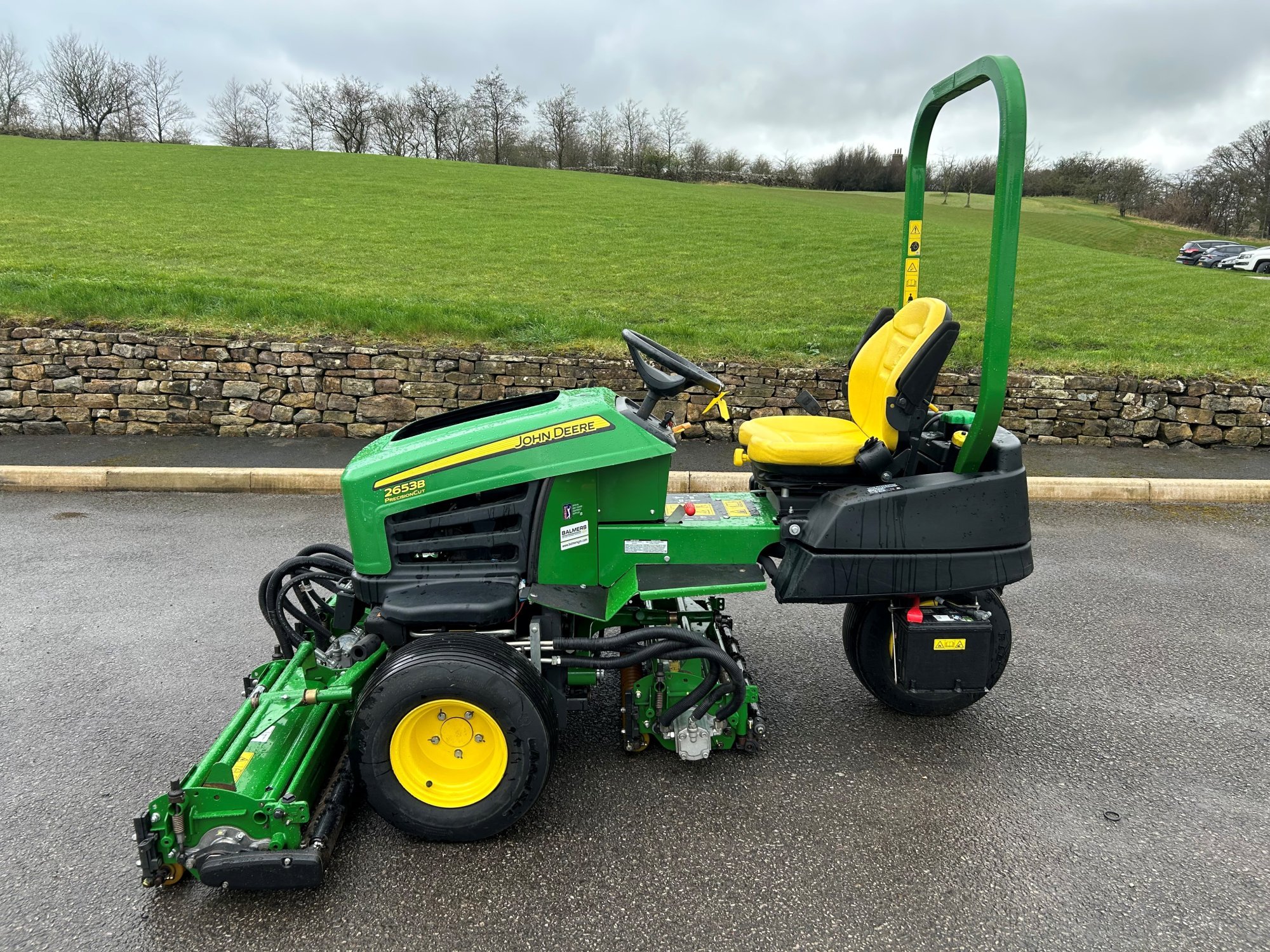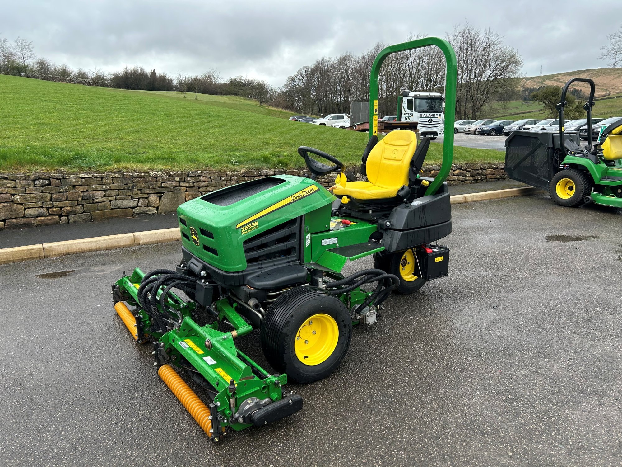 John Deere 2653B surrounds mower, 19.6HP diesel Yanmar engine, 26" 8 blade QA7 cutting units c/w rear roller power brushes.
