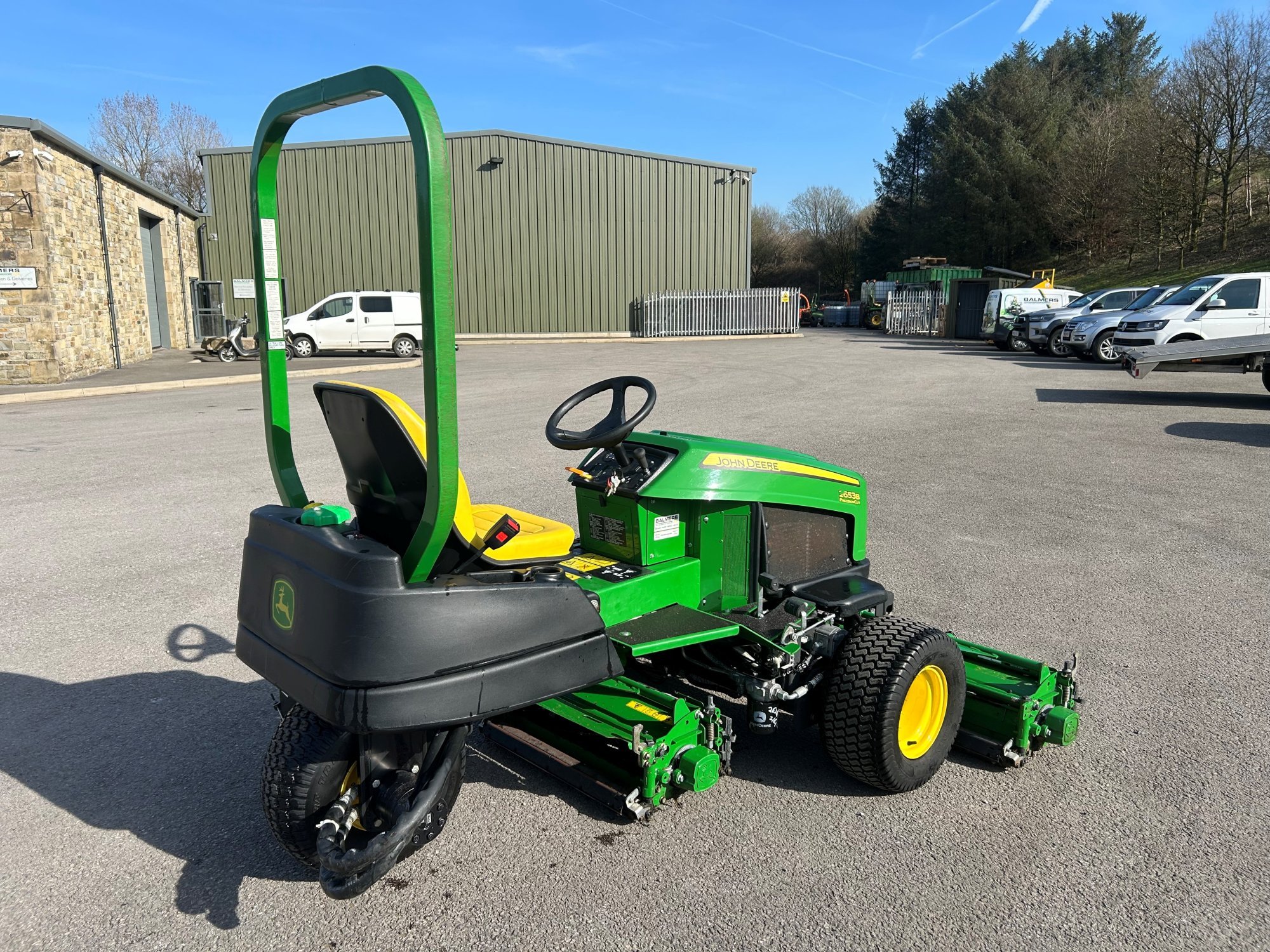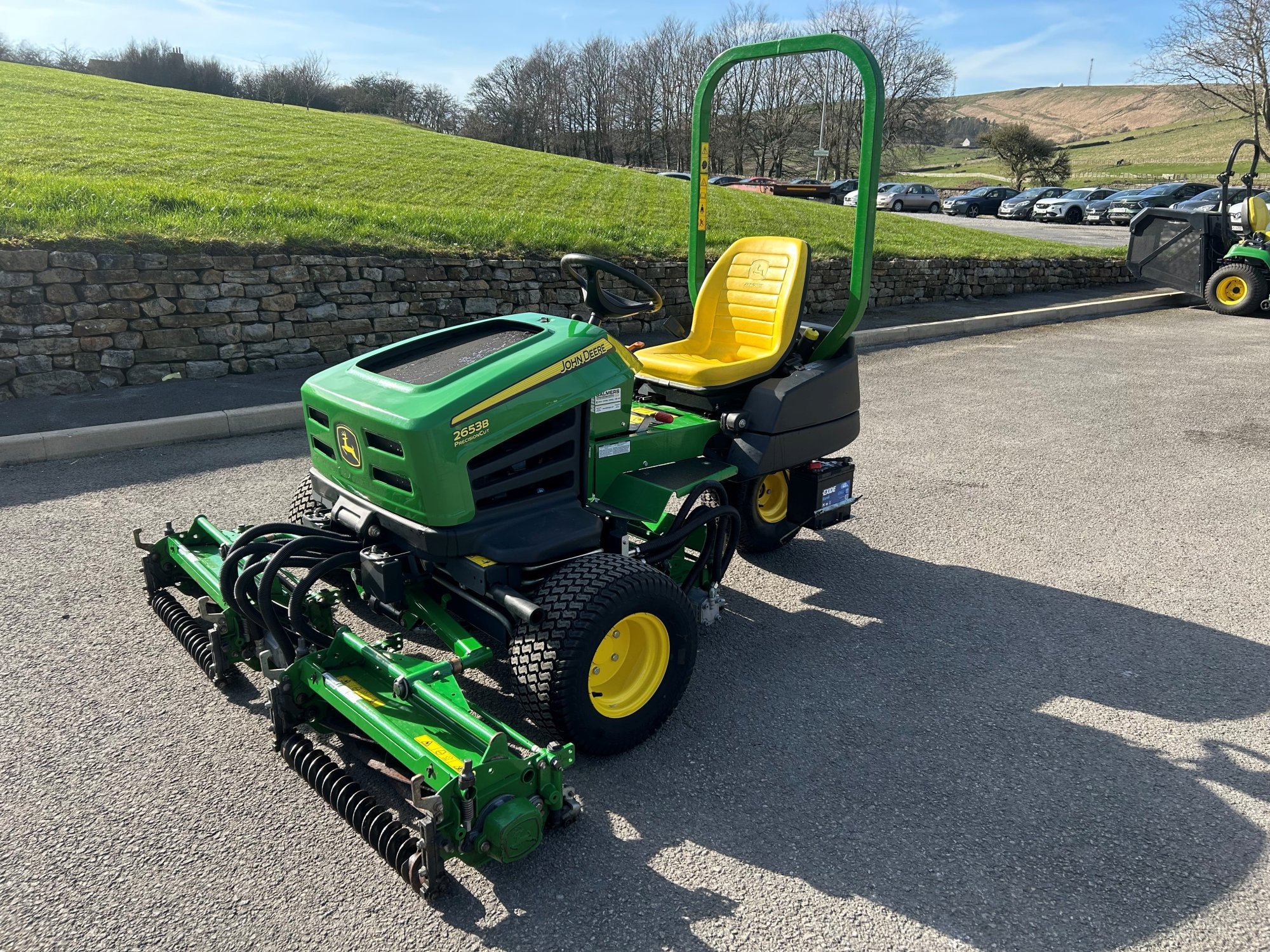 John Deere 2653B tees mower, 26" QA7 cutting units, rear roller scraper, turf tyres.